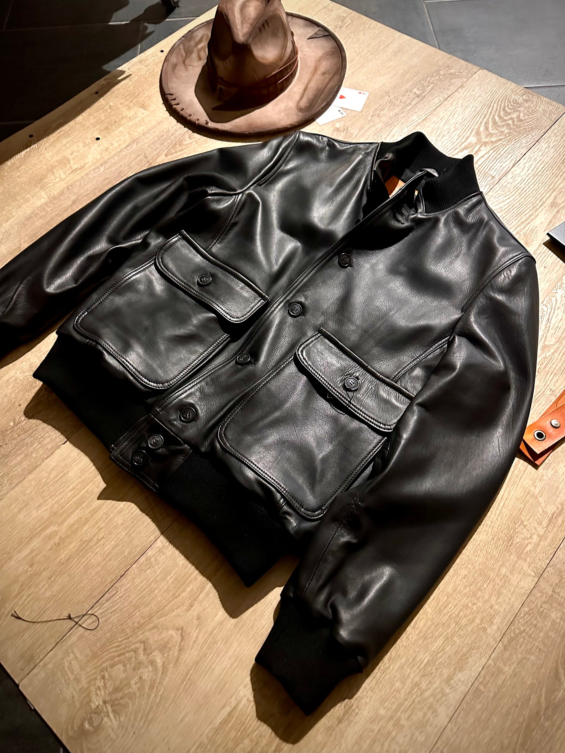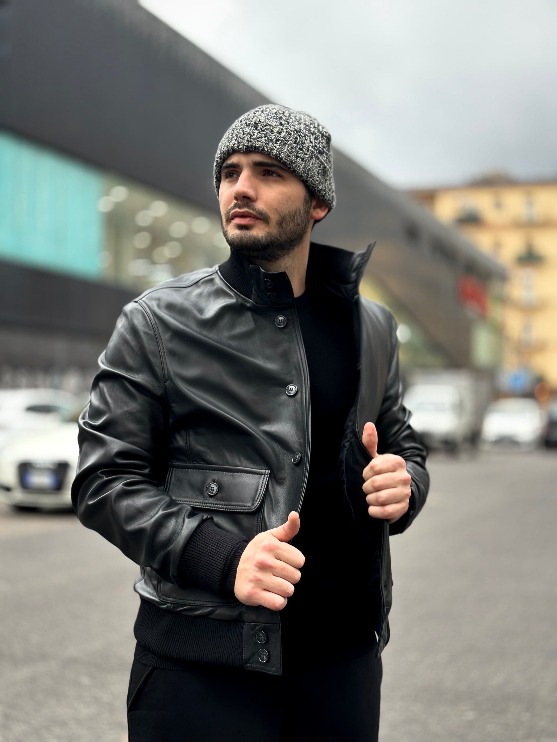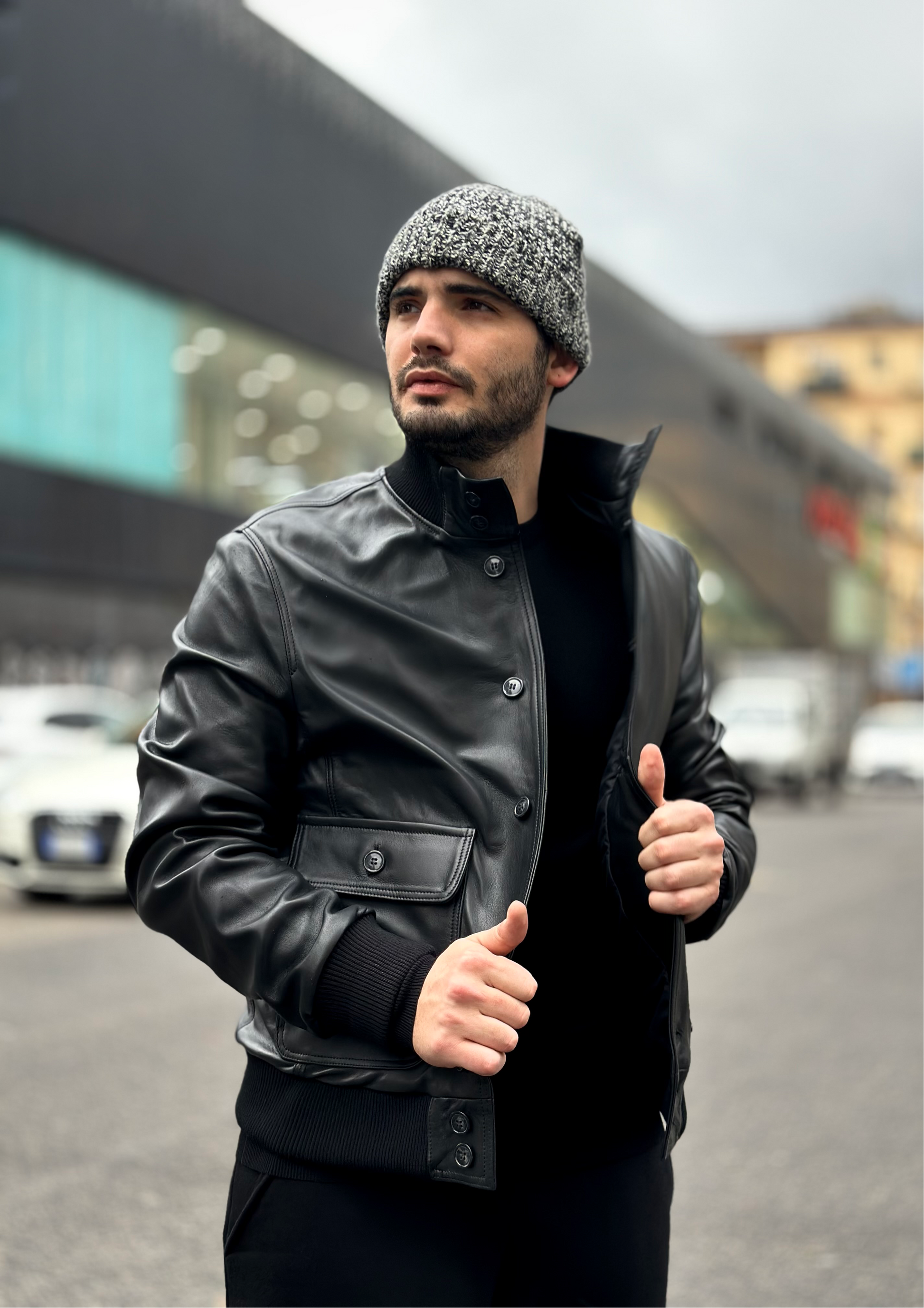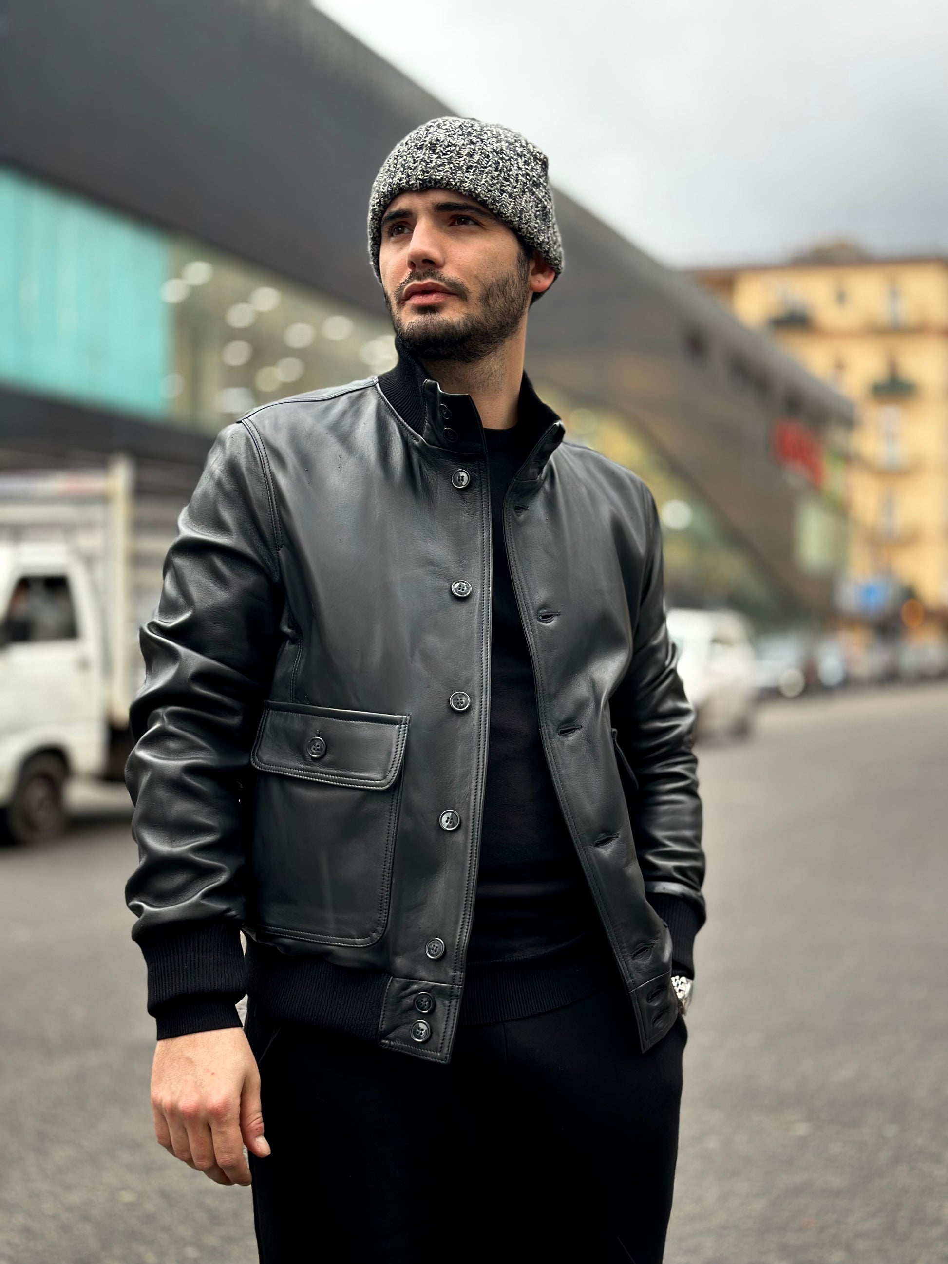 “Brera” Bomber Jacket in extra soft genuine lambskin