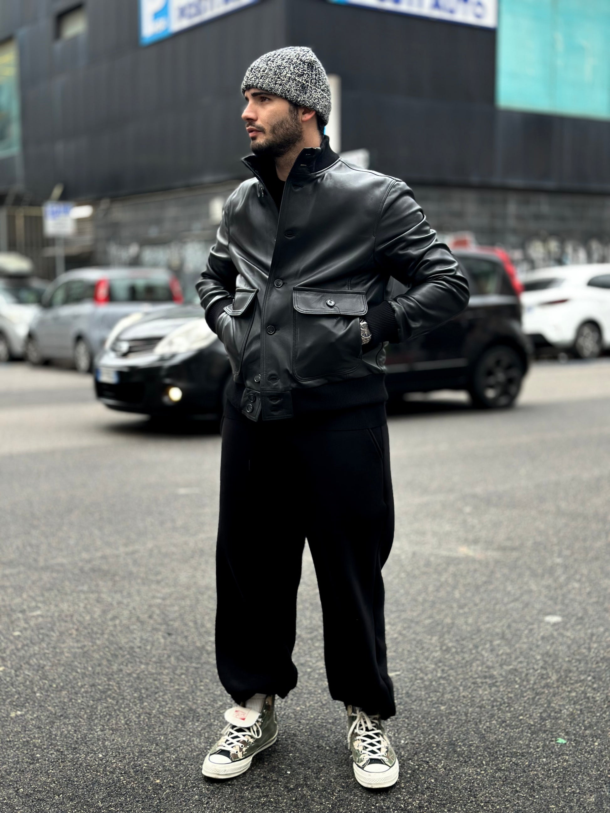 This genuine lambskin jacket combines elegance and functionality in a modern, minimalist design. The soft, smooth lambskin provides a comfortable fit and a sophisticated finish, ideal for a contemporary, urban style. The model features a double internal pocket, perfect for safely storing personal items such as a phone, wallet, or documents. On the outside, two front flap pockets add a touch of practicality and sophistication, while the high collar and ribbed cuffs ensure optimal protection from the cold.