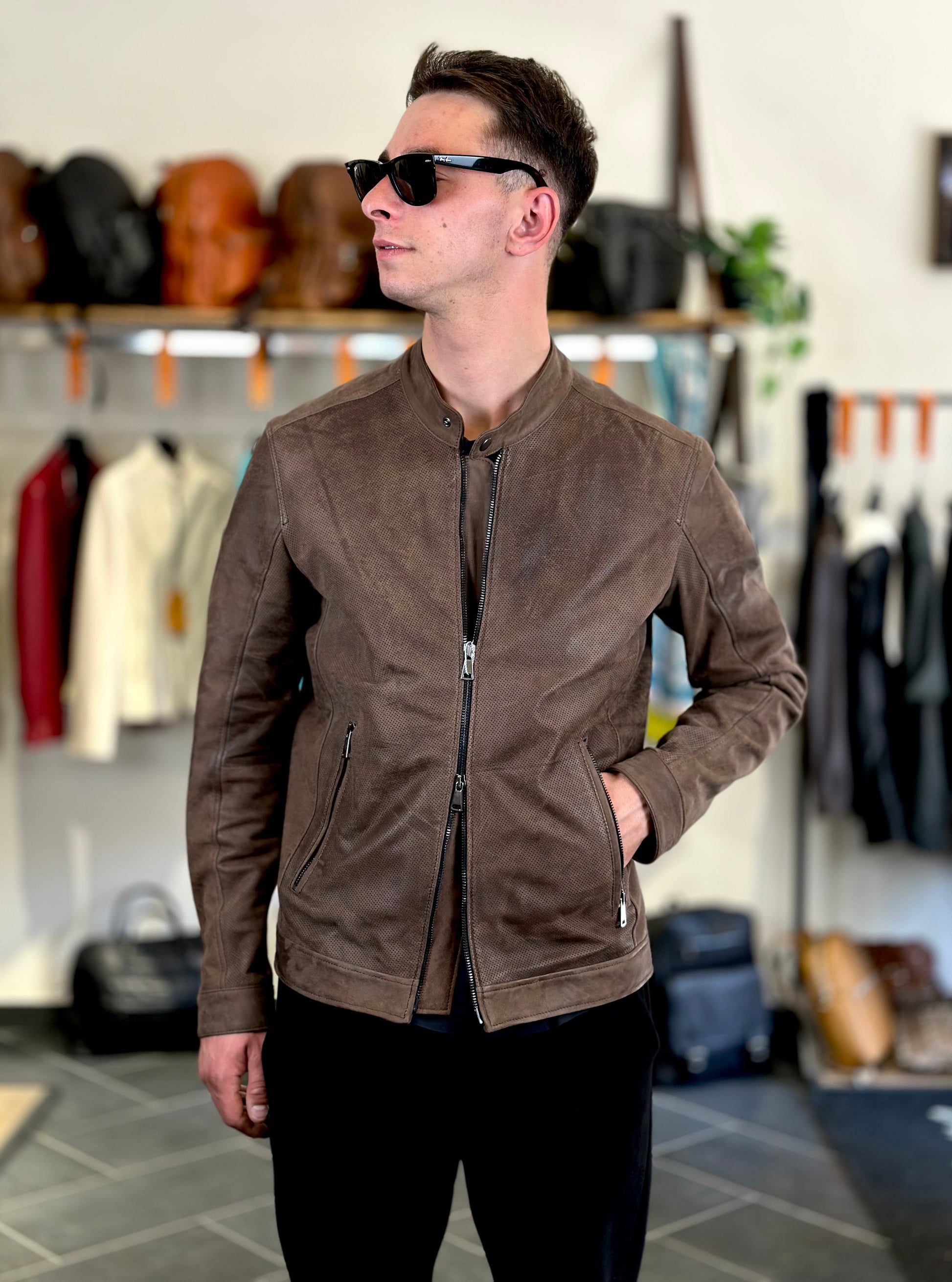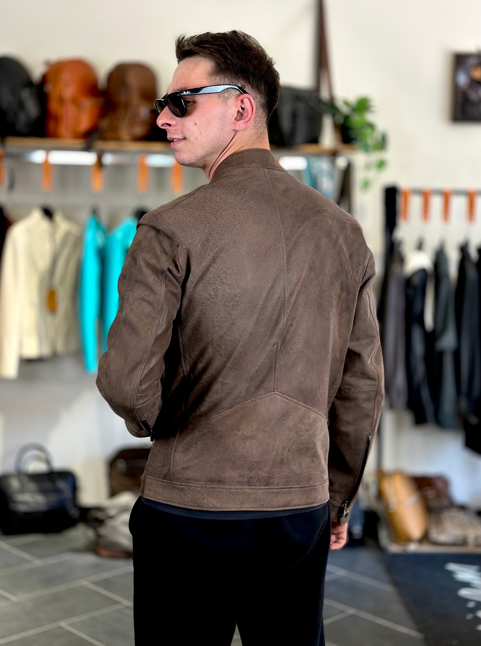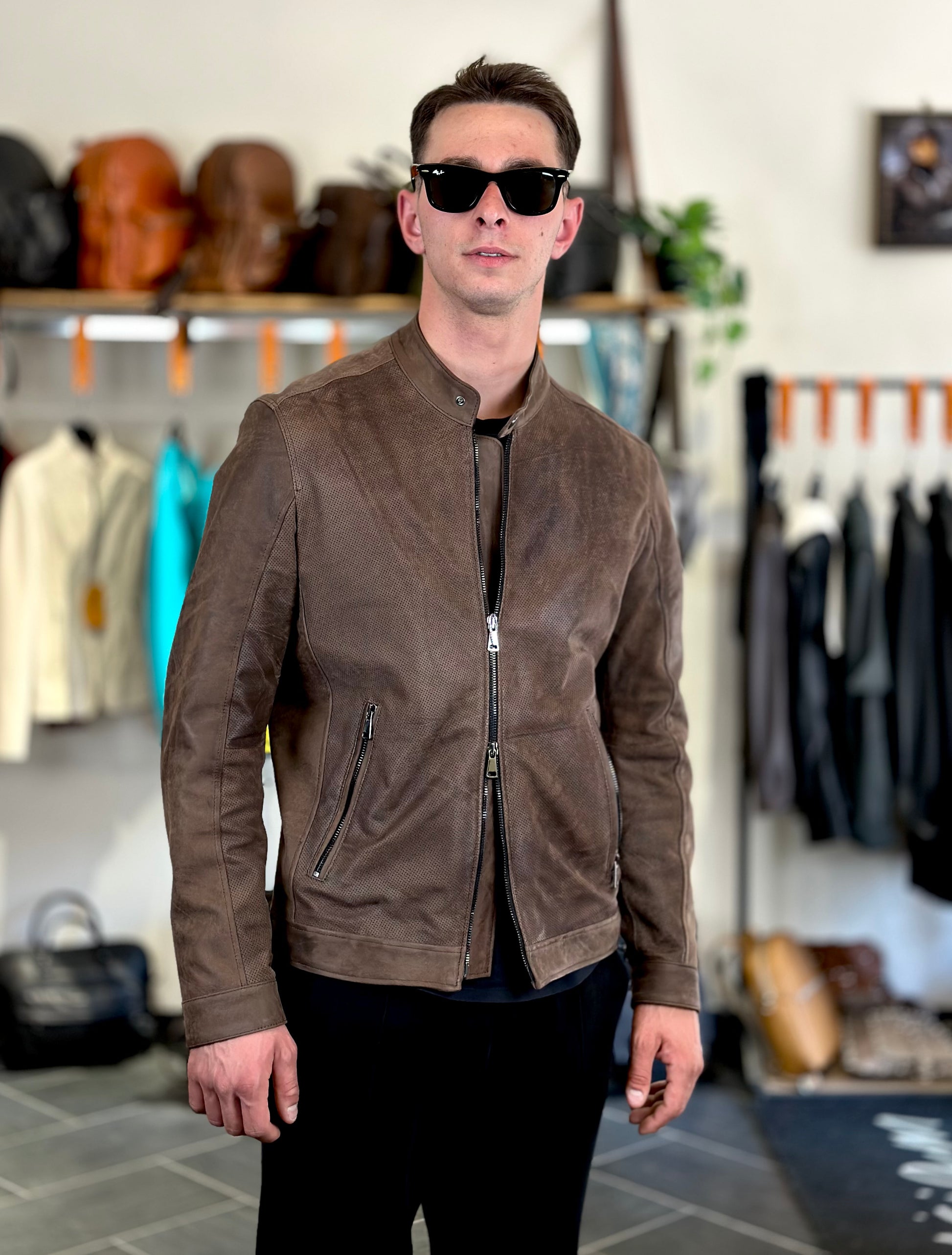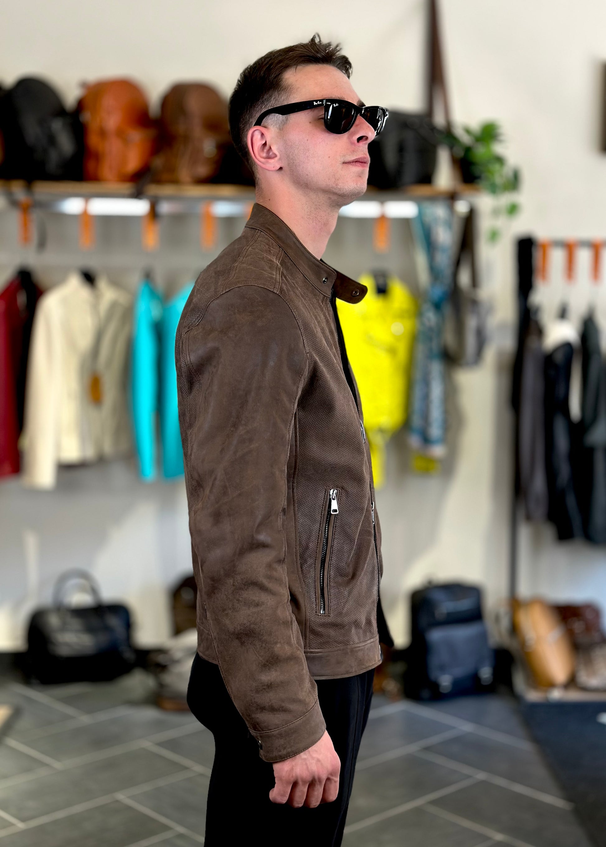 Our Biker Rebel gets a lighter, summerier feel with finely hand-perforated leather, perfect for breathing even on the hottest days, without sacrificing the garment's rugged edge.