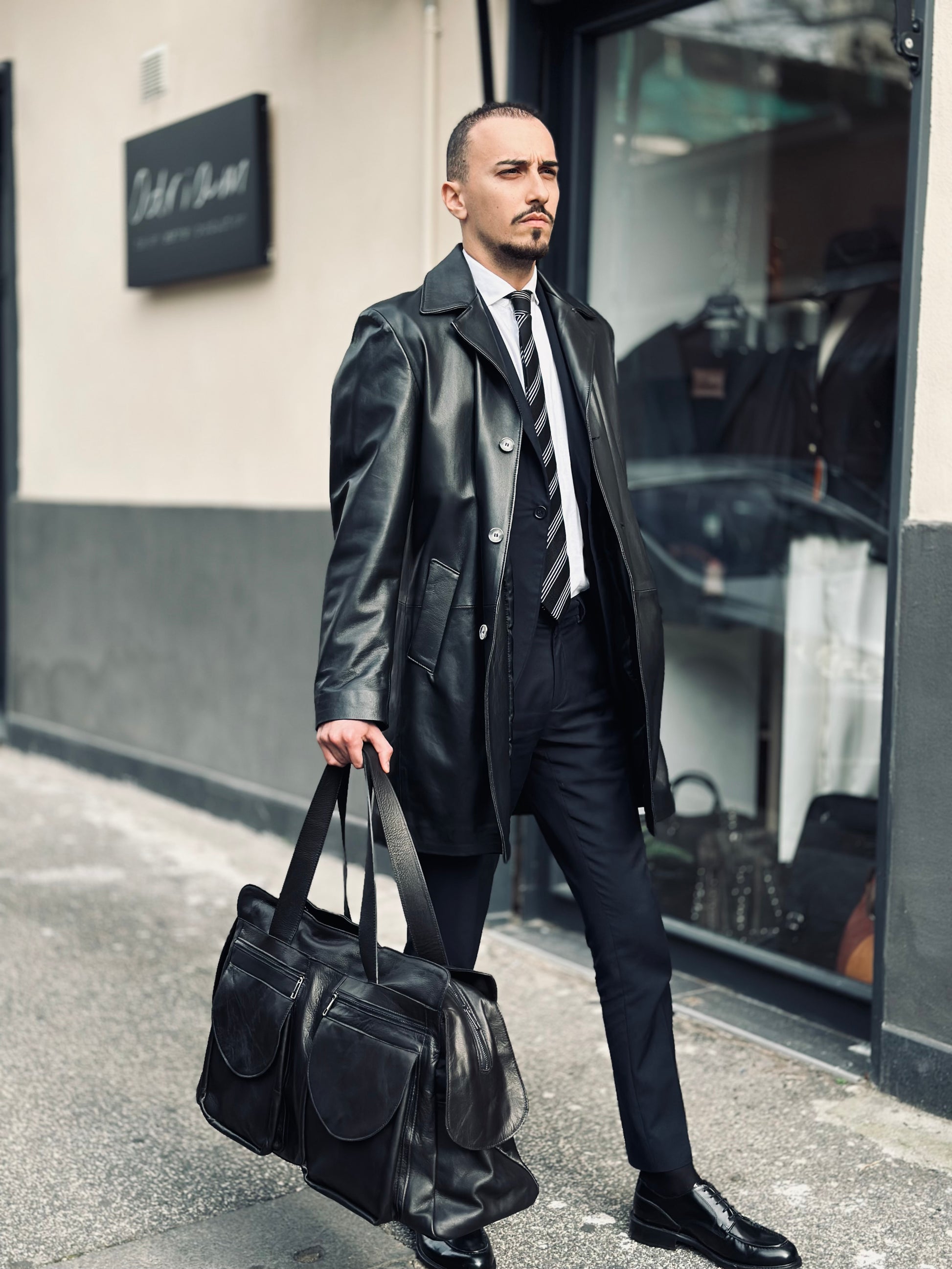 “Prestige 5-Pocket Leather Duffel Bag”