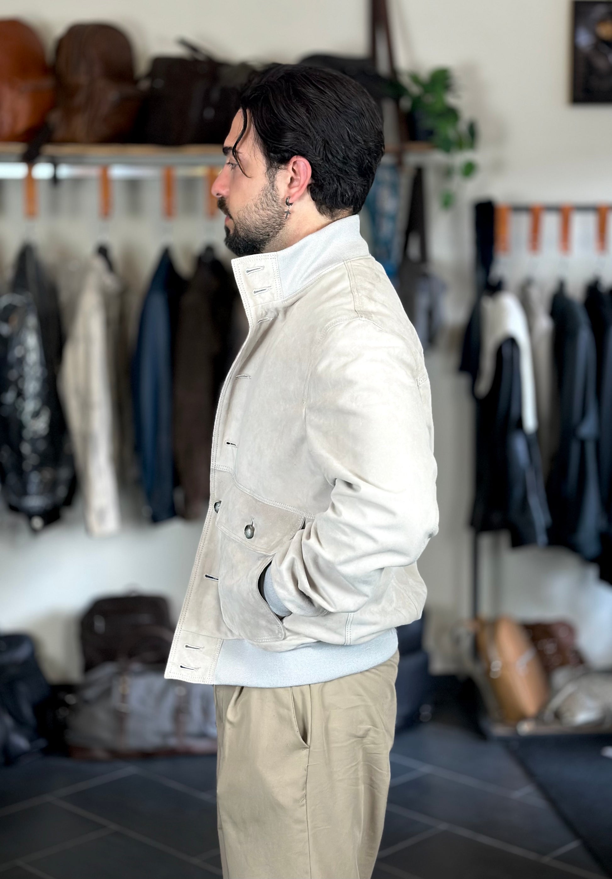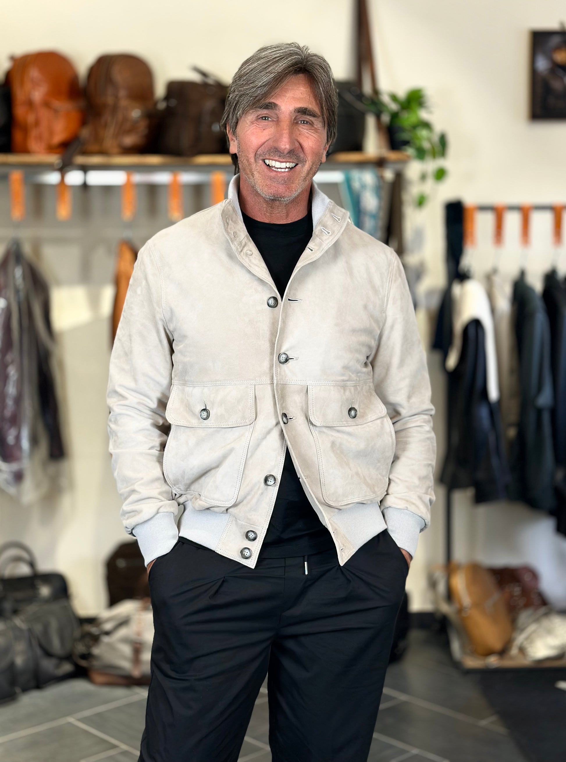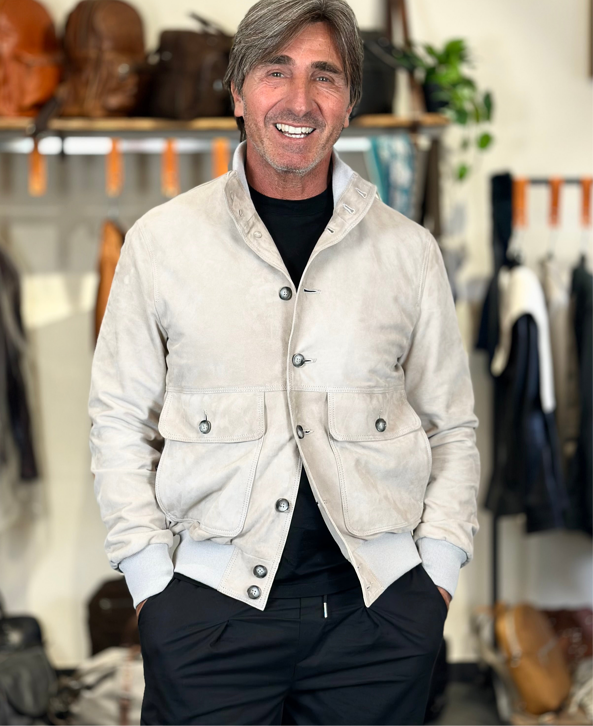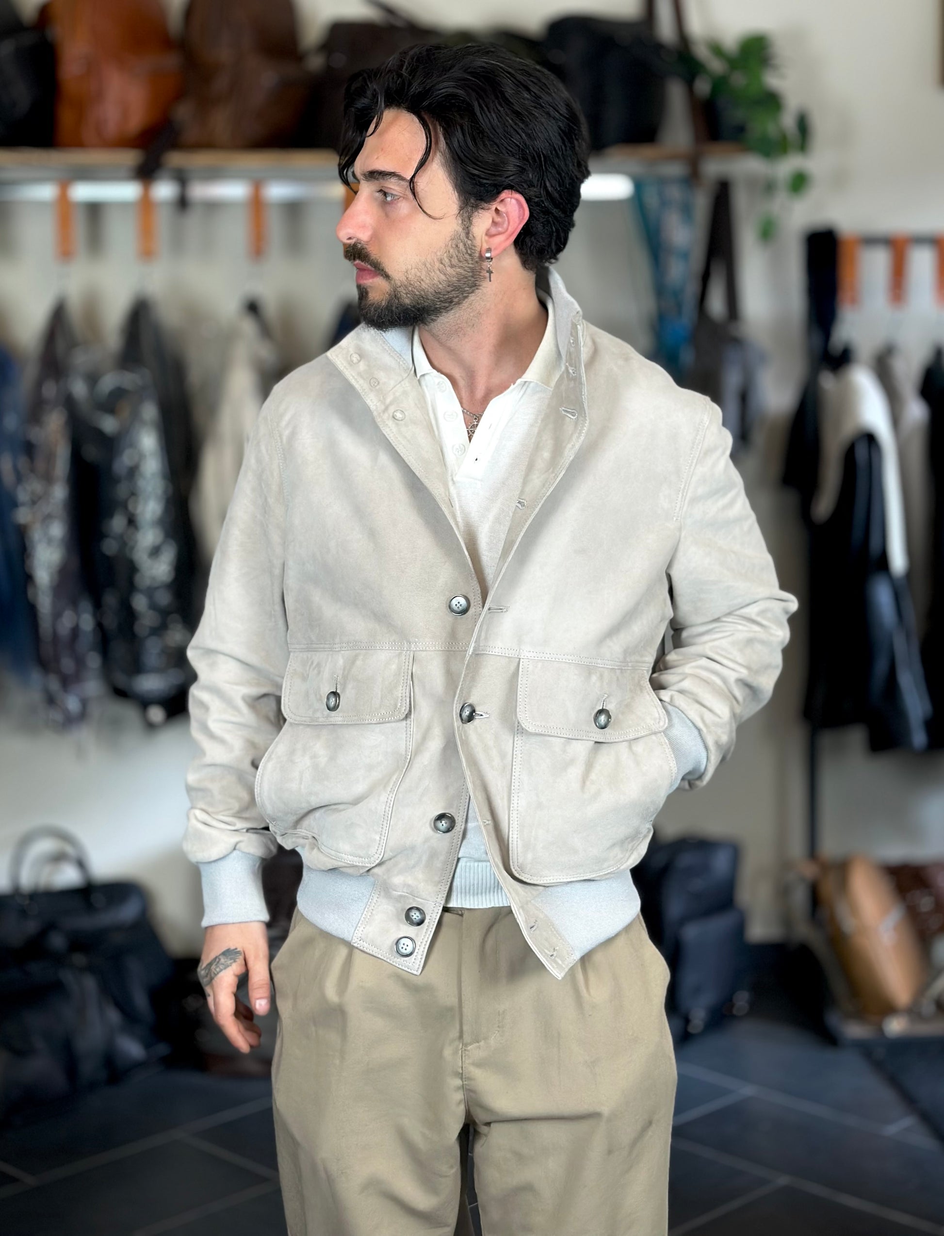 The classic Italian bomber jacket meets the elegance of suede in the ice version of the Brera model.