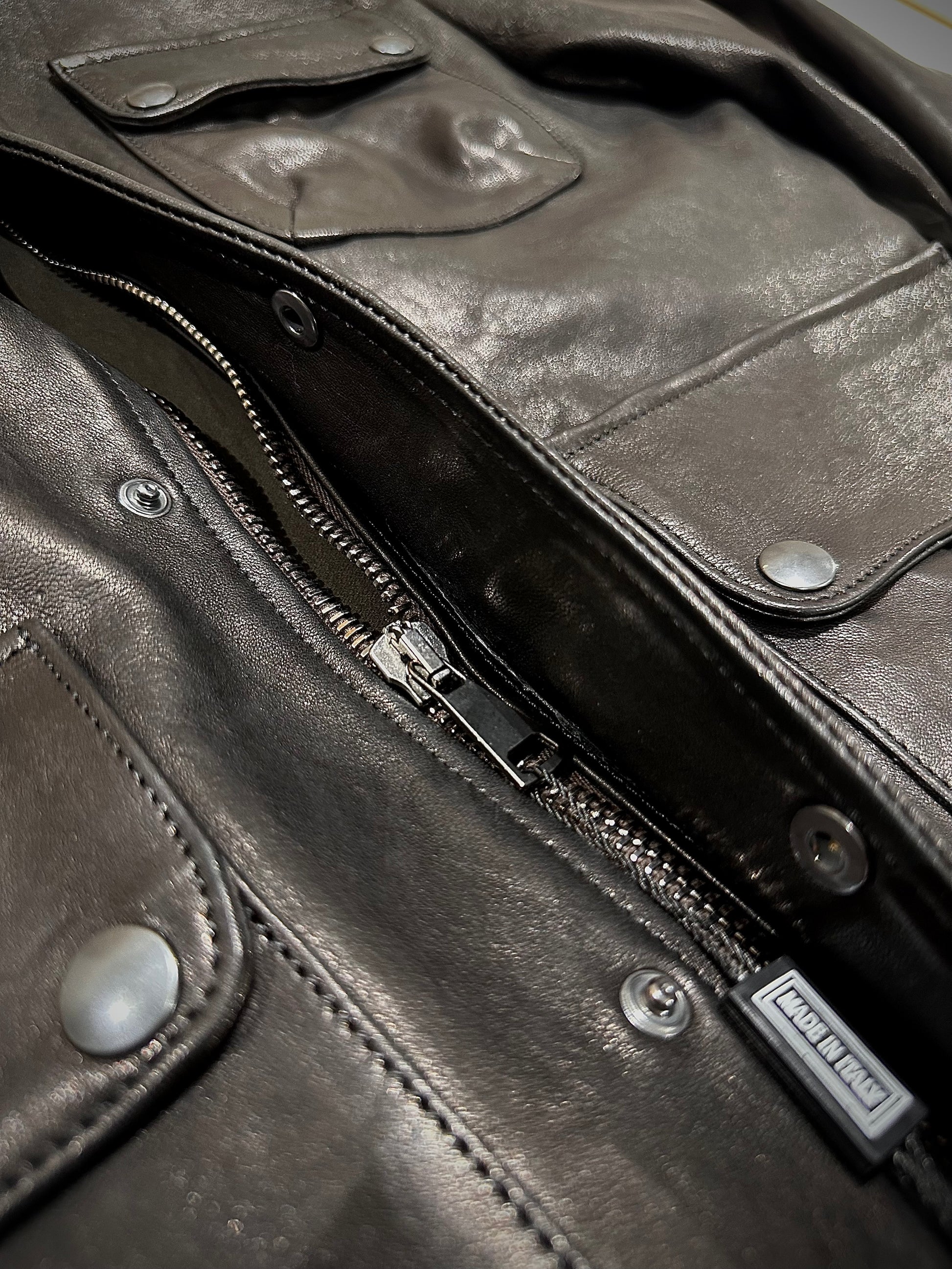La Dakota Heritage Jacket è una giacca realizzata in pregiata pelle di agnello in concia vegetale color nero di una morbidezza unica. Il design classico presenta un colletto stile bomber, una chiusura frontale con zip in metallo e bottoni a pressione, e quattro tasche frontali con pattina, che aggiungono praticità e stile. I polsini e l’orlo a coste garantiscono una vestibilità confortevole e protezione dagli agenti atmosferici. Questa giacca trae ispirazione dalle uniformi dei piloti e dei lavoratori degli anni ‘40 e ‘50, epoca in cui la funzionalità e la resistenza dei capi erano essenziali. La scelta della pelle vegetale e del colore nero richiama l’estetica vintage, mentre i dettagli moderni rendono la Dakota Heritage Jacket un capo versatile per l’uomo contemporaneo.