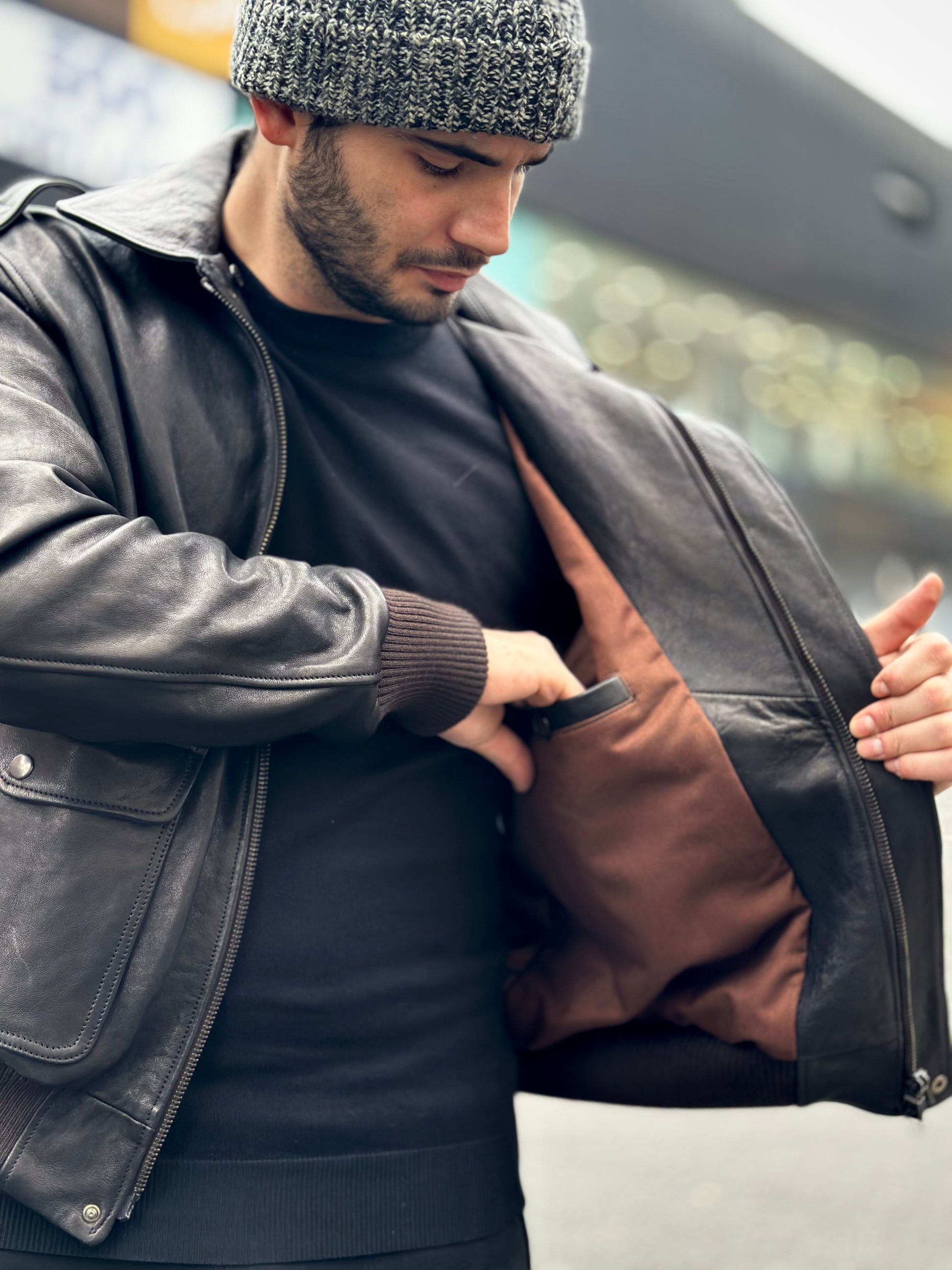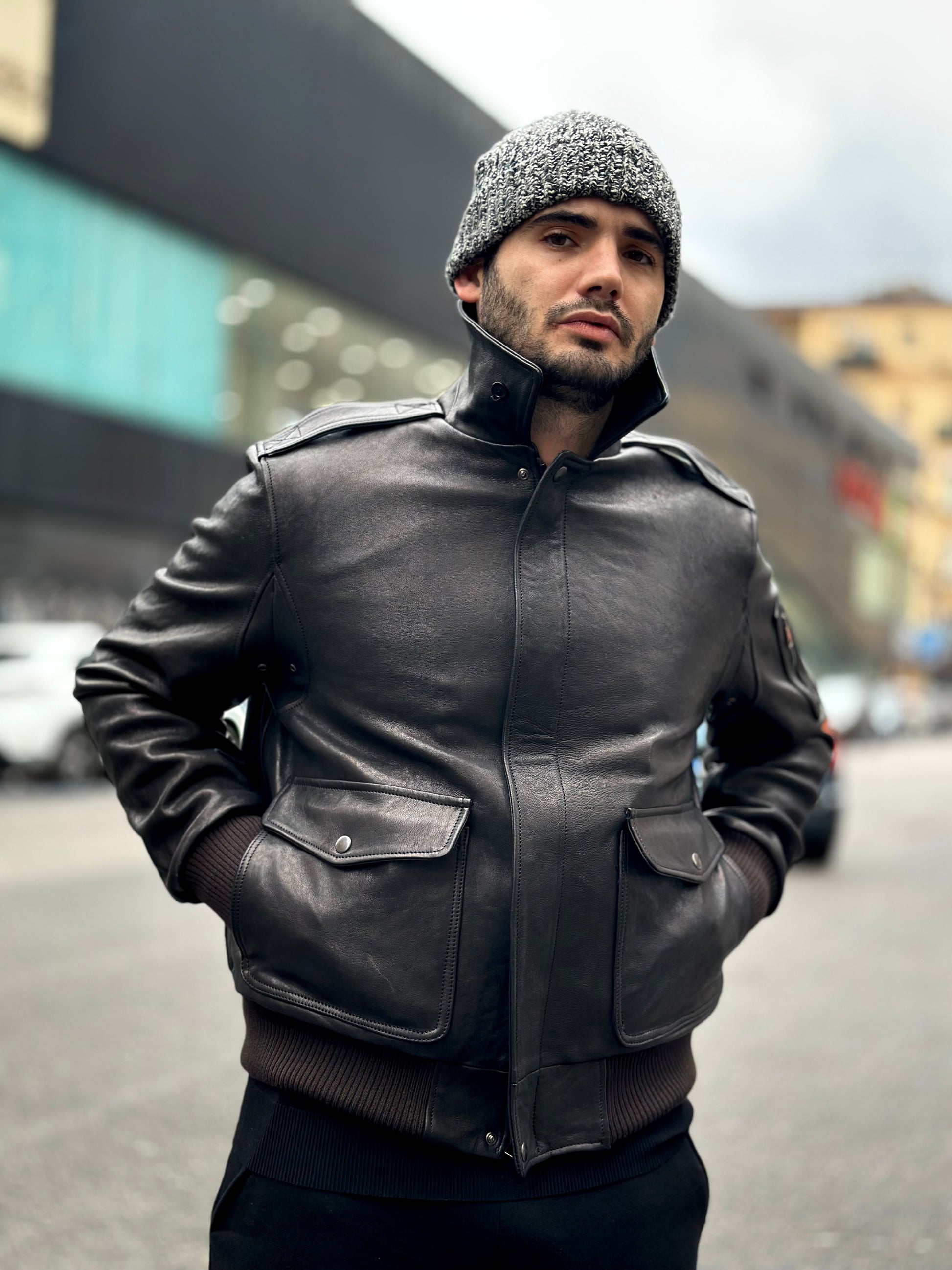 The G1 aviator jacket is crafted from premium vegetable-tanned leather, a natural and durable material that gives the garment a unique patina over time. This classic style, inspired by historic American pilot jackets, features a soft and warm sheepskin collar, perfect for protecting you in the coldest weather. The padded interior provides an extra layer of warmth and comfort, making this jacket ideal for the coldest days. The timeless design, combined with the quality of the materials, makes the G1 aviator a versatile, elegant, and functional piece that never goes out of style.