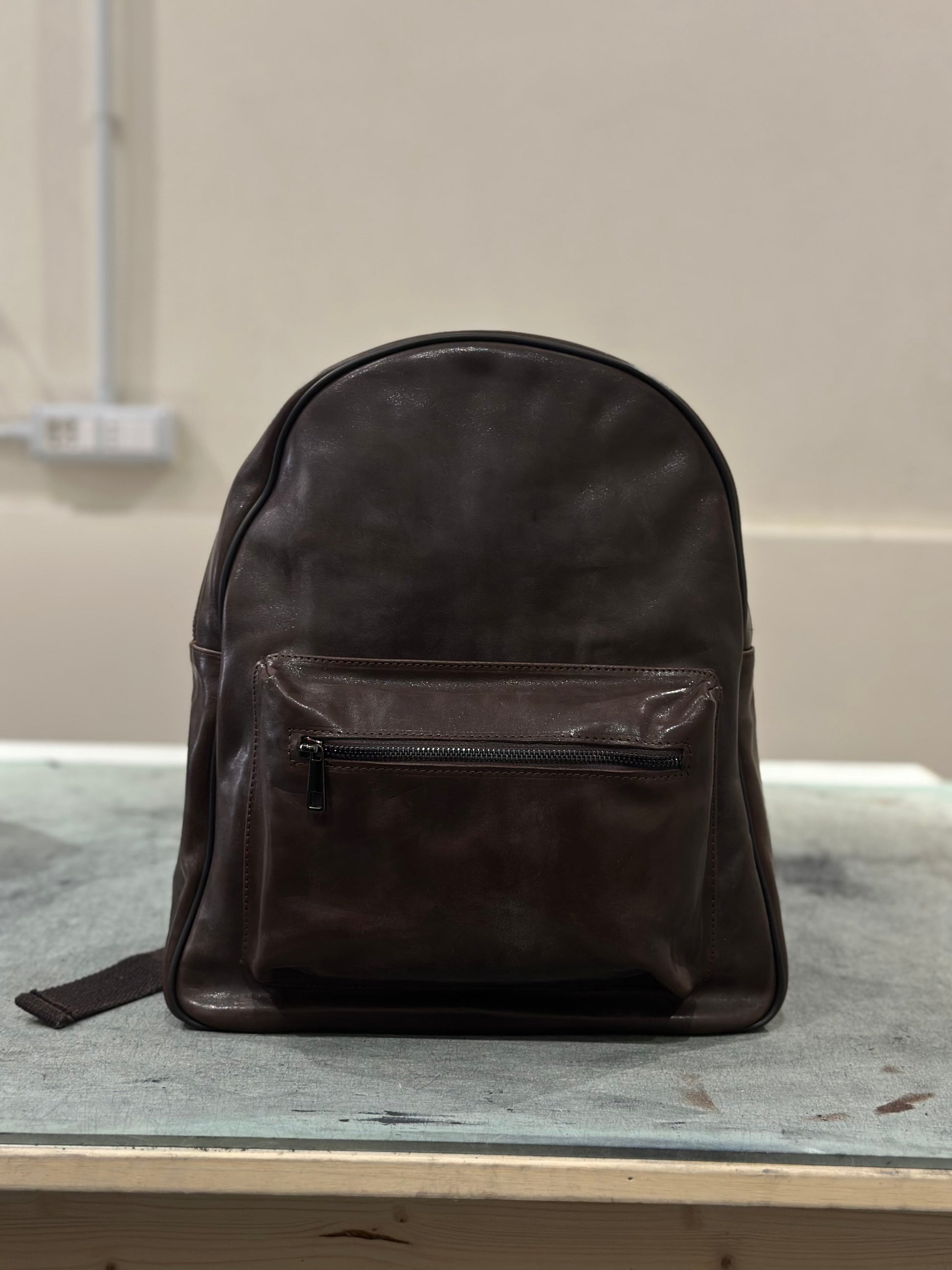 Refined and essential, this dark brown vegetable-tanned leather backpack is the perfect accessory for those seeking elegance and practicality in every situation. Handcrafted from the highest quality leather, it features: