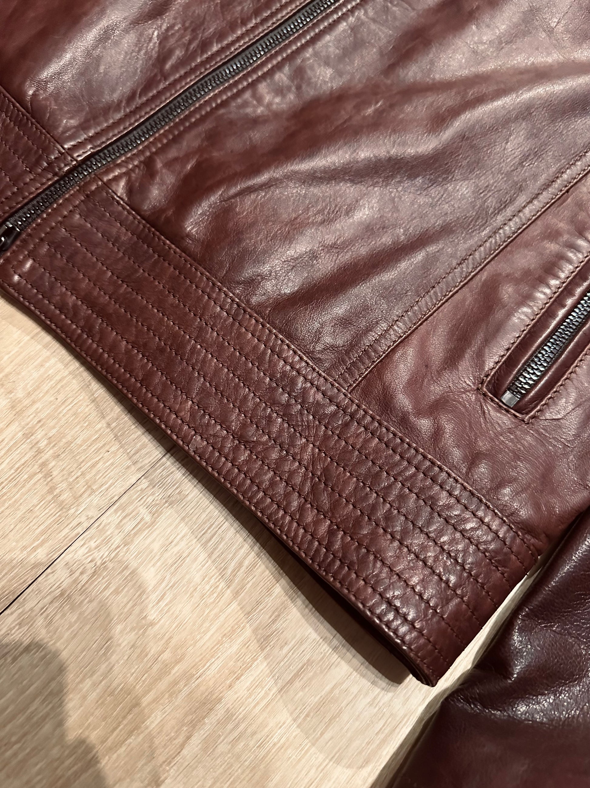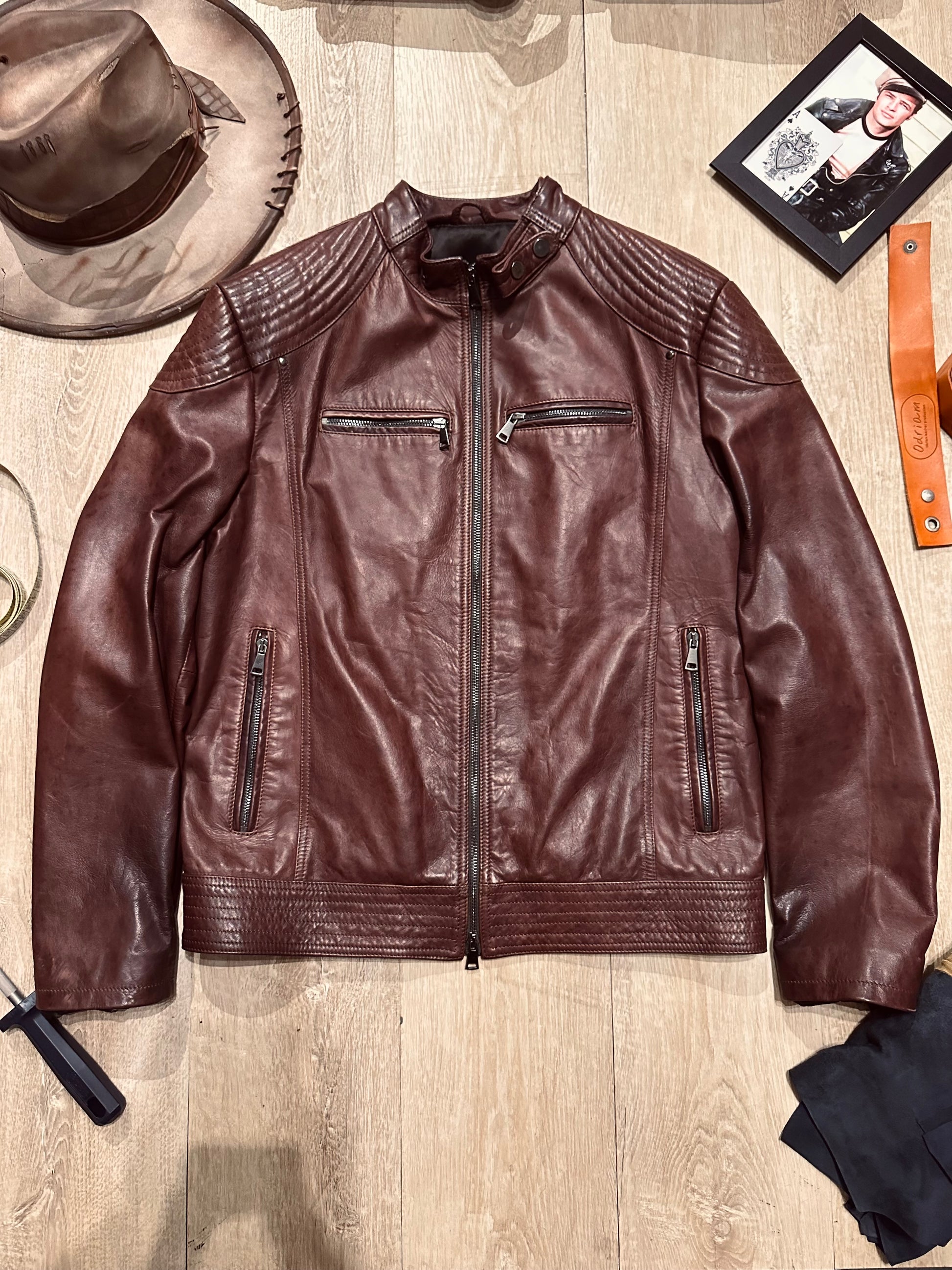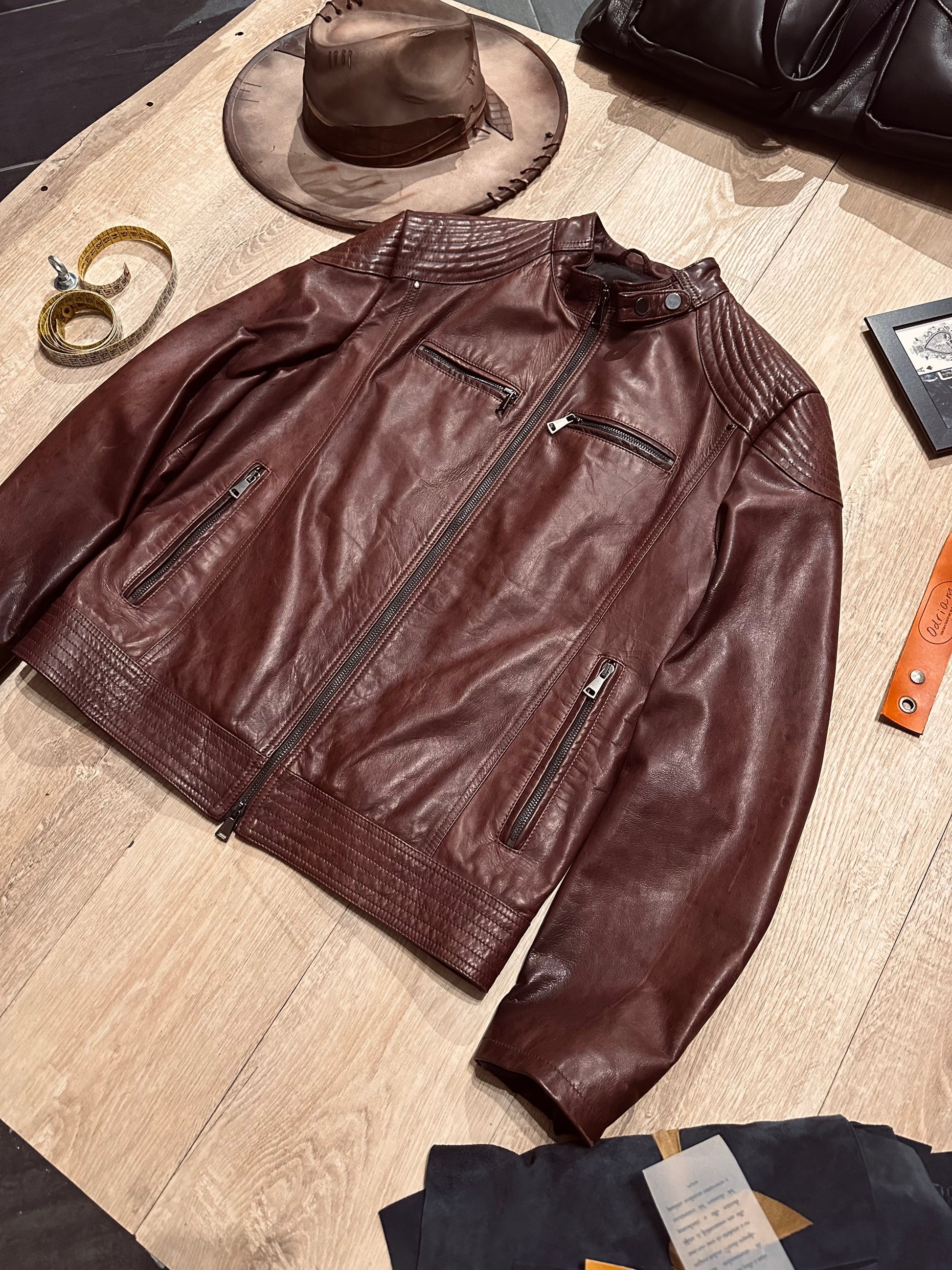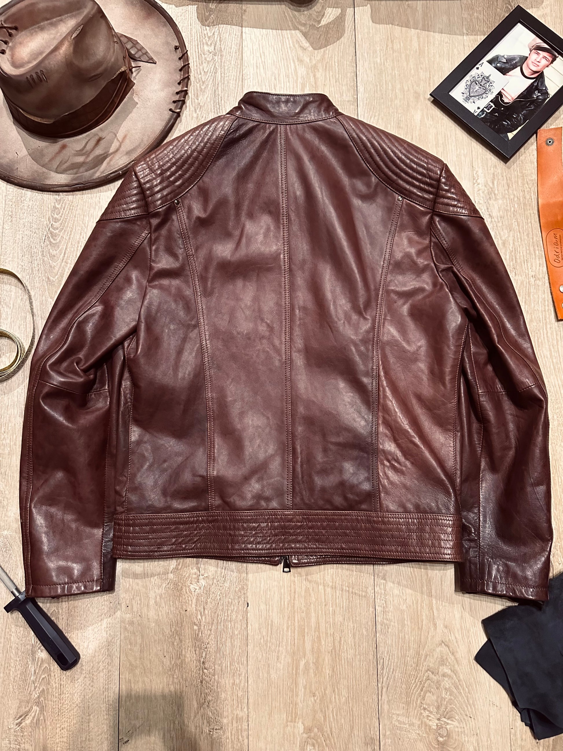 A tribute to the timeless elegance of Tuscan tradition, the Florence Heritage is a chestnut-colored leather biker jacket, embellished with detailed stitching on the shoulders and waistband. Crafted from the highest quality leather, this piece embodies Italian craftsmanship and Florentine style.