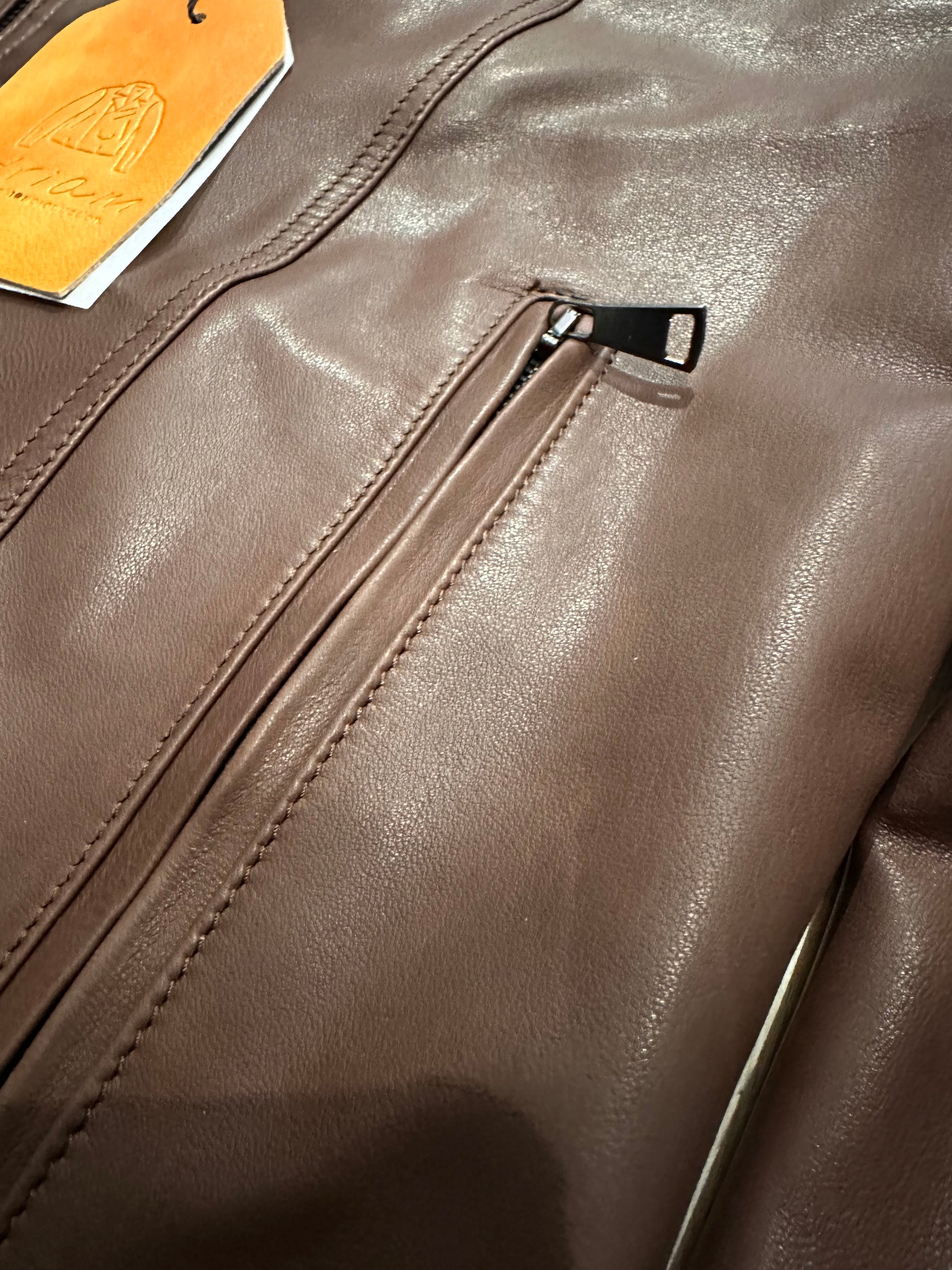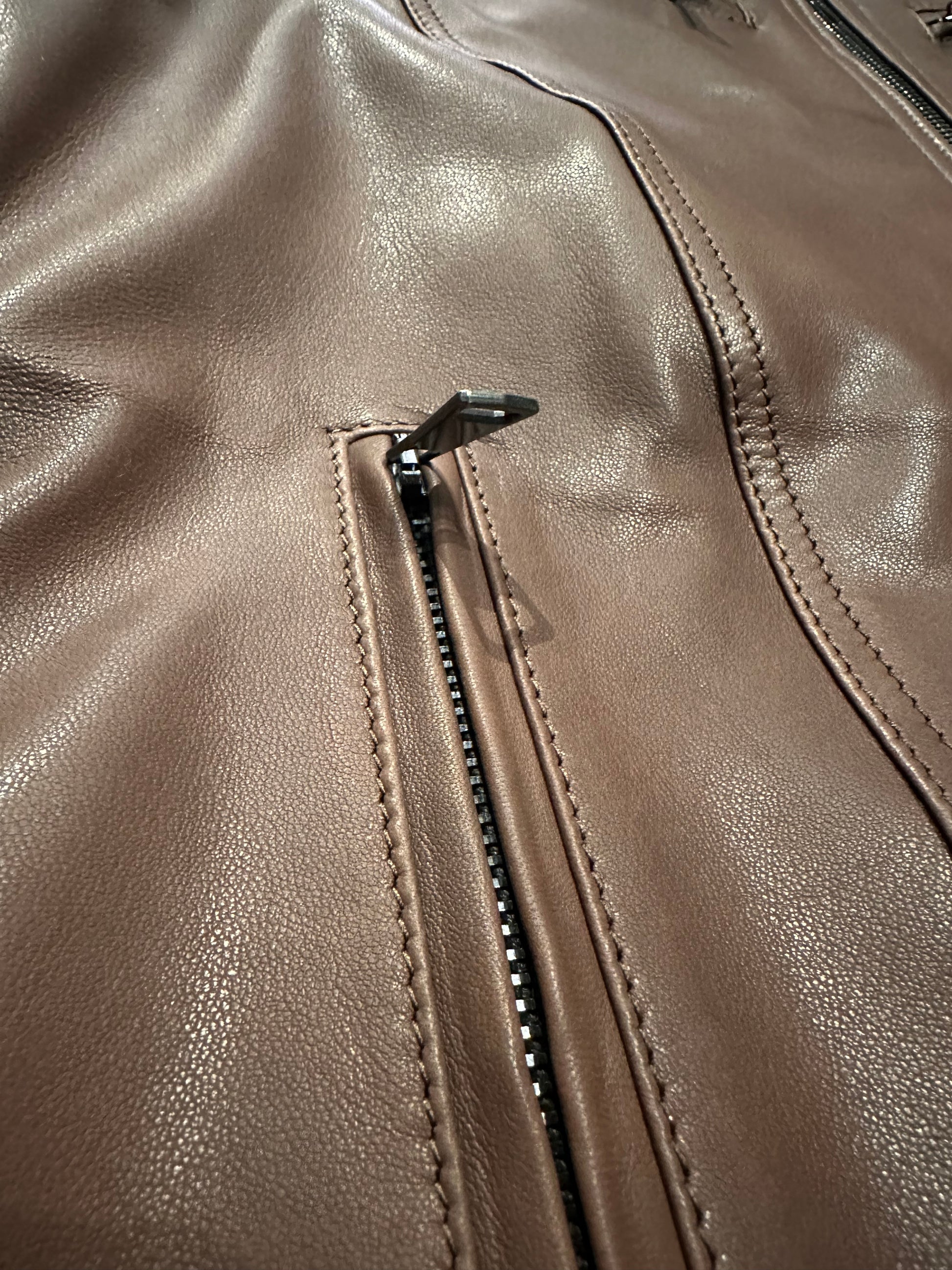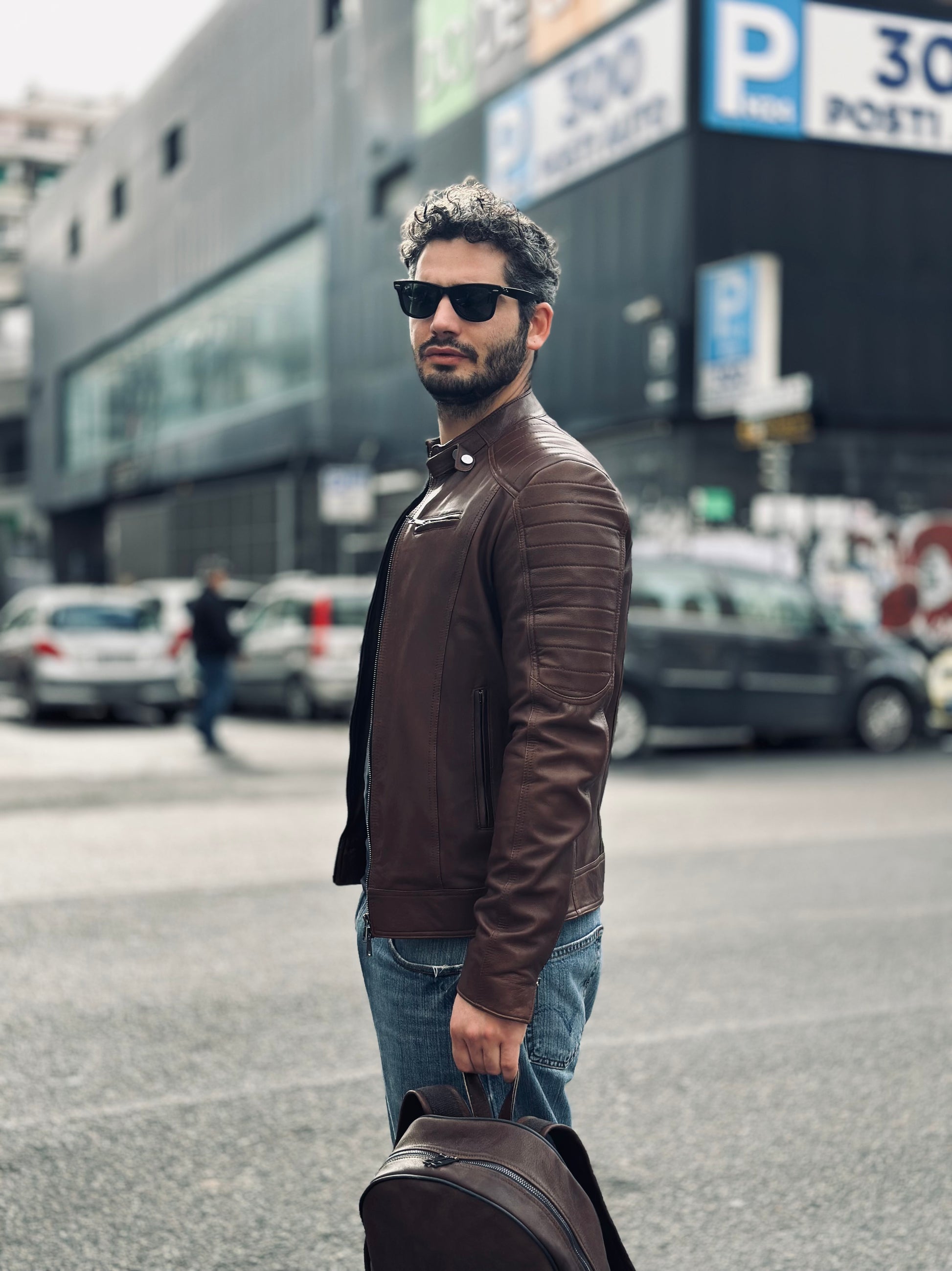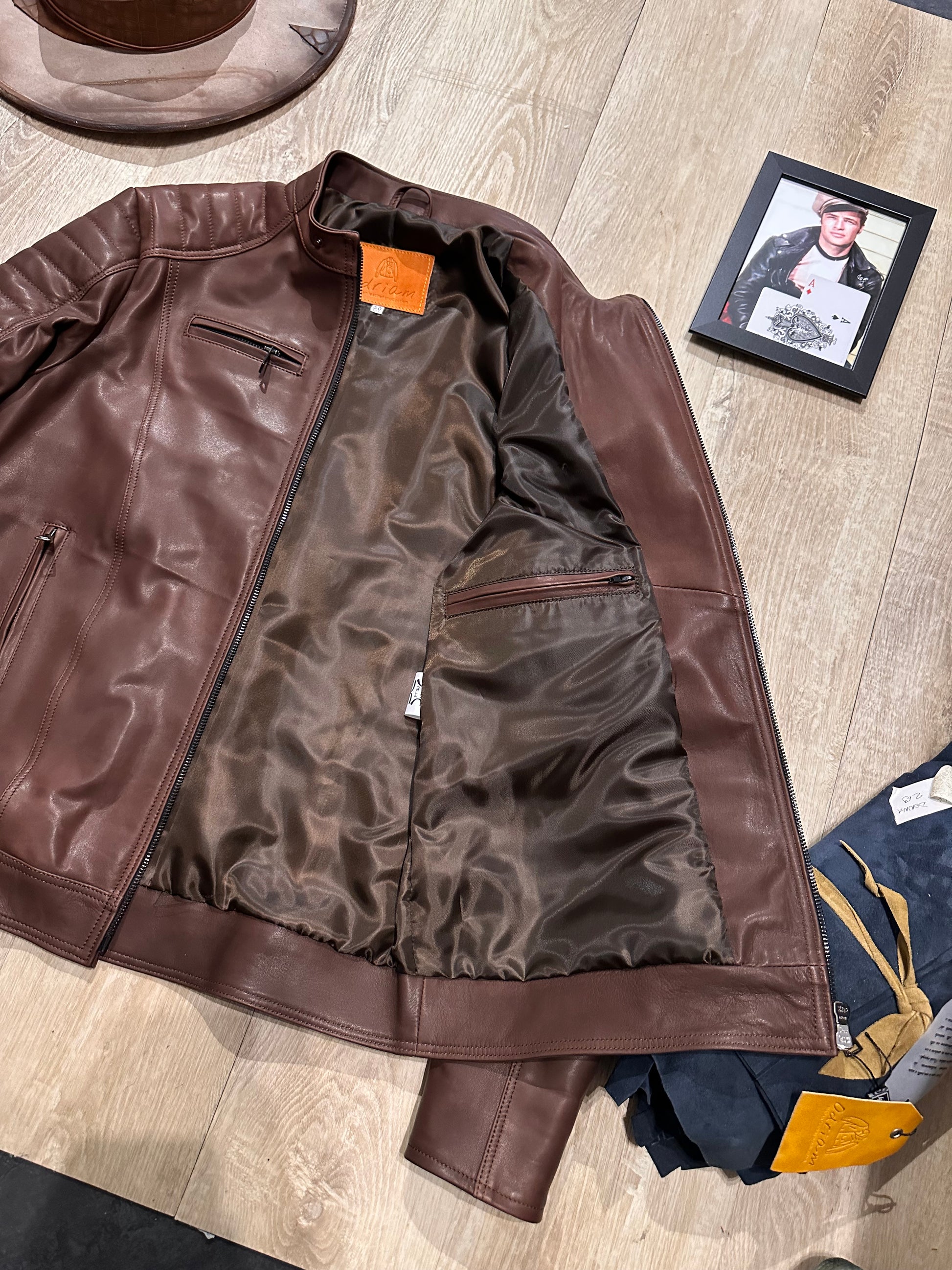 The Steel Stallion biker jacket in soft natural leather features a bold, refined fit. Crafted from high-quality leather, it stands out for its bold design that combines practical details with a refined aesthetic. It features two front pockets with metal zippers to keep essentials close at hand and two zippered chest pockets, adding a touch of functionality without compromising style. The stitching on the shoulders and sleeves adds character and a quilted effect that emphasizes the jacket's design. The interior features a double pocket, designed for greater practicality and organization. The soft natural leather ensures comfort and an impeccable fit, making this garment ideal for those seeking the perfect blend of rugged durability and a sophisticated rock style.