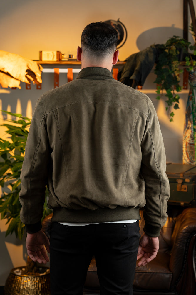 The Verdant Vista Suede Bomber with Cargo Pockets is a style statement that combines the elegance of suede with the practicality of cargo pockets. Its green hue recalls the reflections of nature, evoking a feeling of freshness and vitality. Design details, such as the spacious suede chest pockets, add a touch of functionality without compromising style. The fitted cut and high-quality finishes lend a refined and sophisticated look, perfect for those seeking a casual yet distinctive look. This bomber jacket captures the eye with its unique combination of elegance and practicality, making it the ideal piece for exploring the city or adding a touch of style to your everyday look.