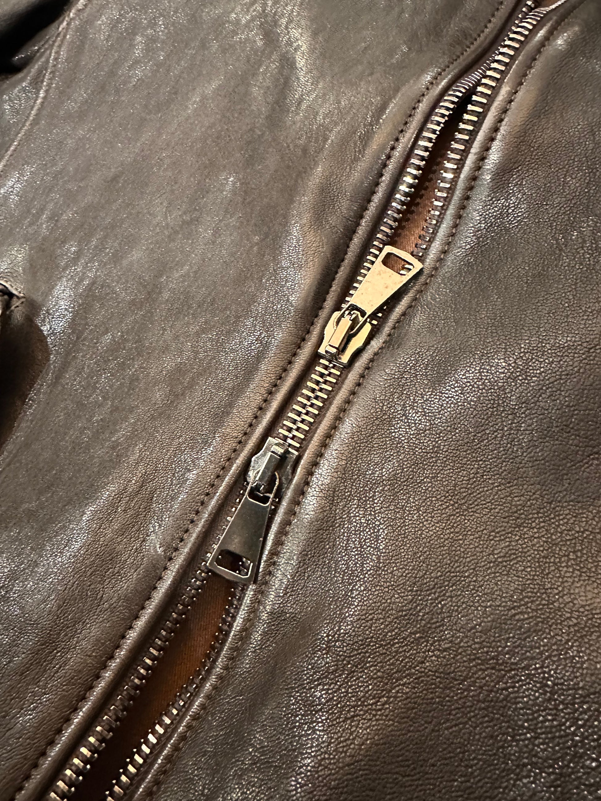 The washing process gives the leather a slightly worn effect, making each jacket a unique piece with a lived-in yet extremely refined look.