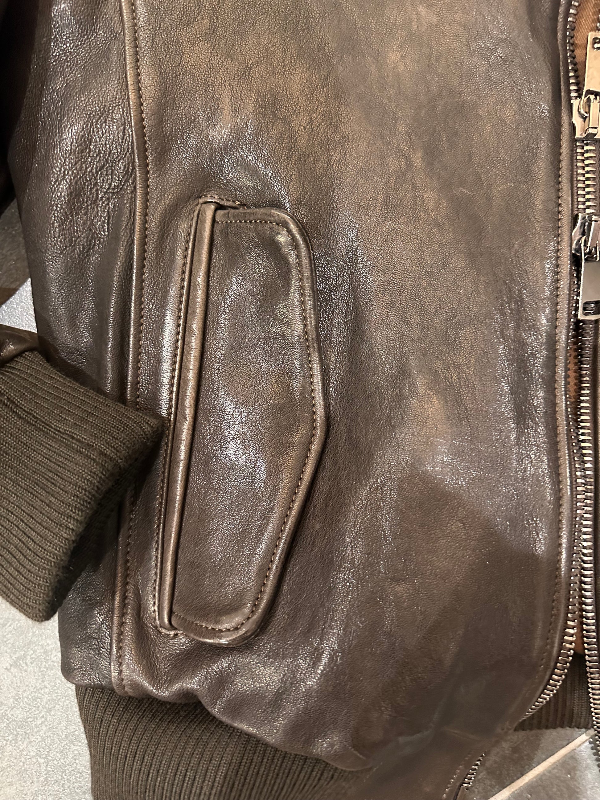 The Vesuvio Bomber Jacket is much more than just a jacket: it's a symbol of elegant craftsmanship and Neapolitan tradition. Crafted from high-quality washed vegetable-tanned leather , this piece combines durability and softness, ensuring a unique fit that adapts perfectly to the body.