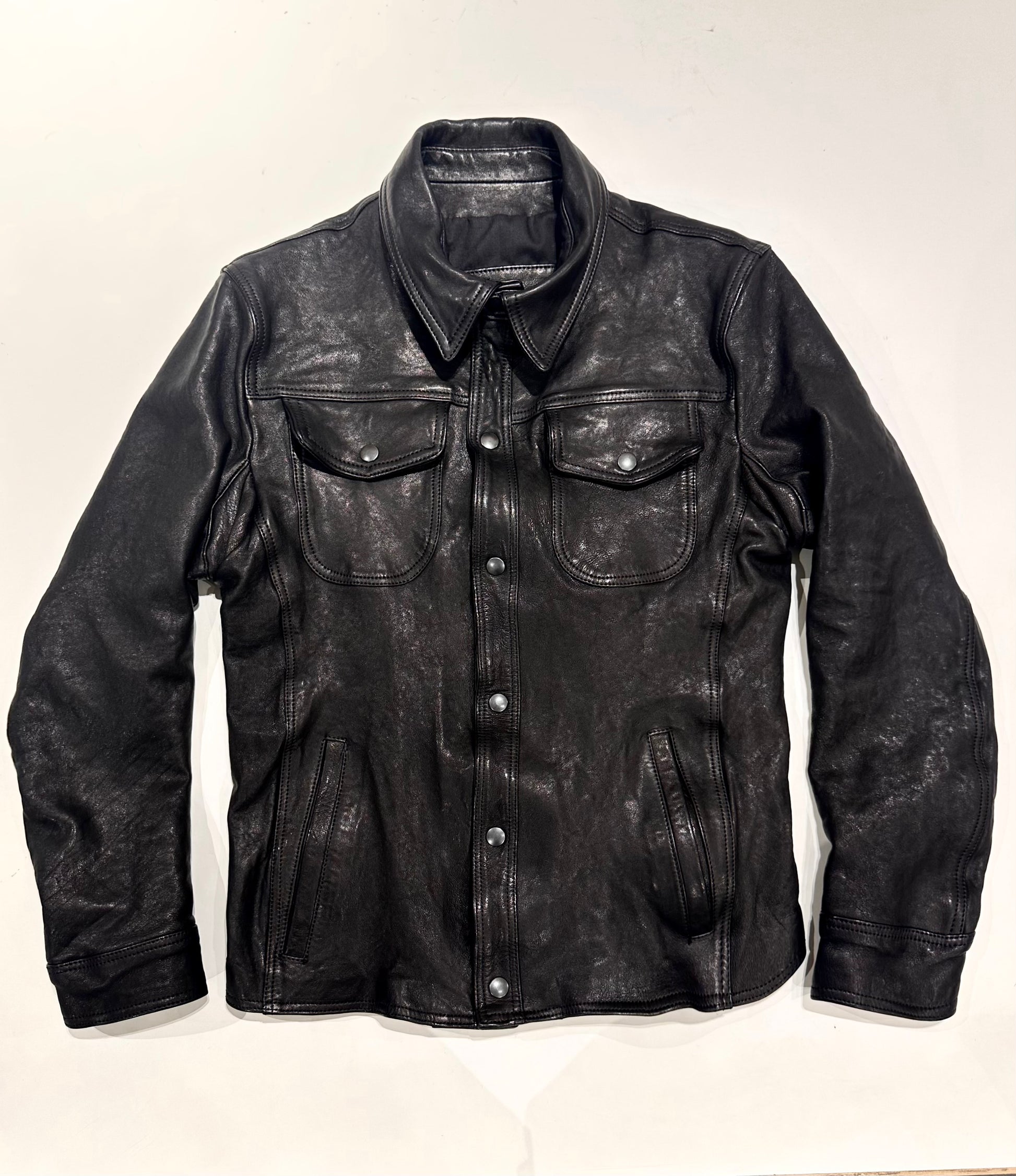La chemise en cuir délavé est une pièce emblématique qui incarne un style urbain et sophistiqué. Confectionnée en cuir délavé de première qualité, elle dégage une allure à la fois décontractée et raffinée. Le cuir délavé lui confère un aspect usé et une touche vintage, ajoutant caractère et personnalité à son design. Avec sa silhouette classique et sa coupe confortable, cette chemise s'accorde parfaitement avec une variété de looks, aussi bien décontractés qu'élégants. Des détails de haute qualité, tels que des coutures contrastées et des boutons métalliques, lui confèrent une touche de style unique. Cette chemise en cuir délavé séduit par son élégance intemporelle et son esprit urbain, ce qui en fait un ajout polyvalent et élégant à toute garde-robe, homme ou femme.