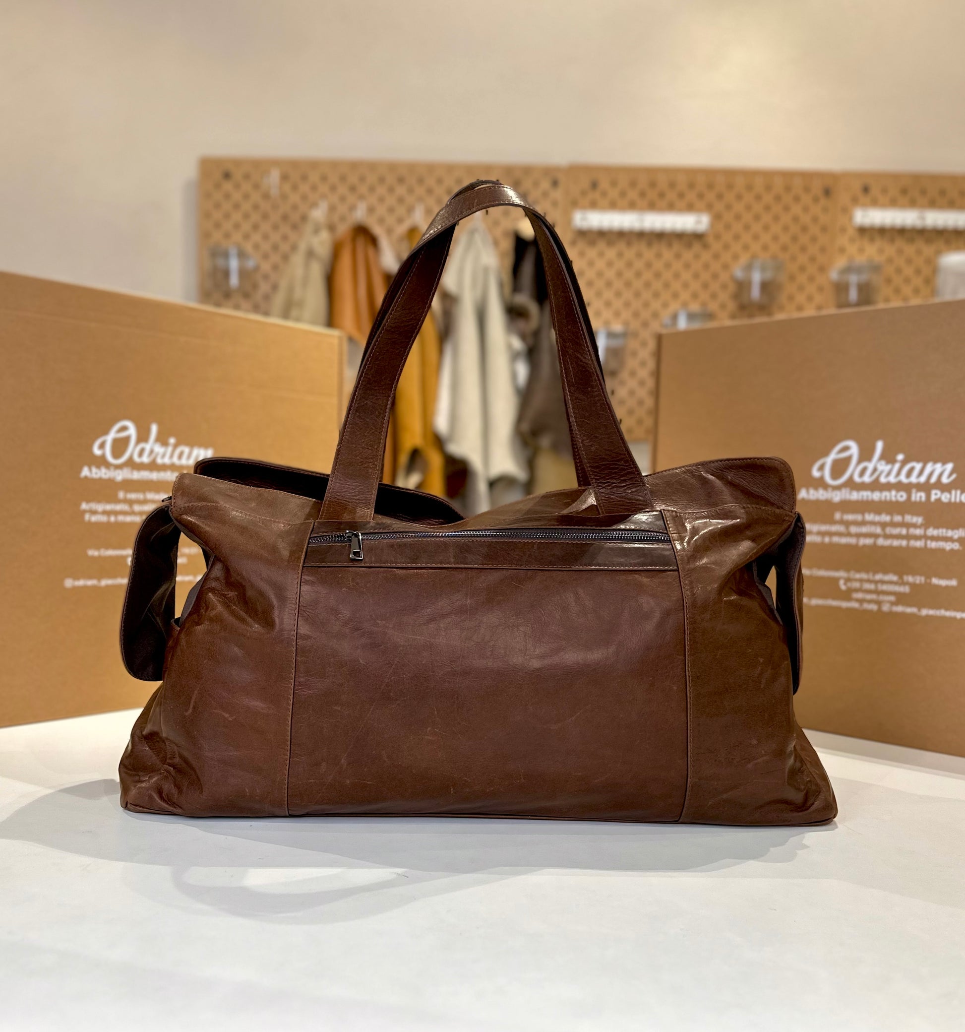 “Borsone Prestige” in Pelle di vitello pull invecchiato